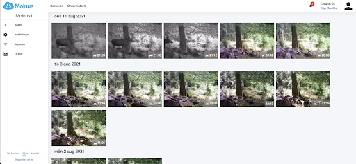 Senast tagna bilden för varje kamera innehåller nu även tidsstämpel på vilket klockslag bilden är tagen, samt eventuellt viltinventeringsinformation.