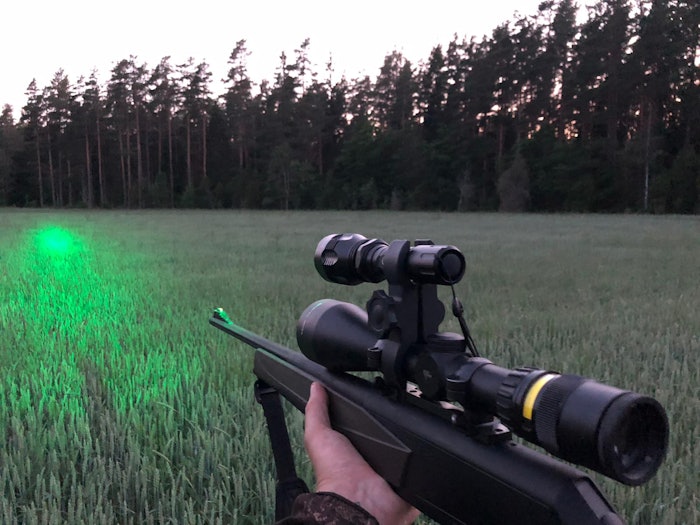 Det finns flera olika val av optik till spannmålsjakten, du kan välja allt ifrån ett kikarsikte med lite bättre ljusinsläpp, IR-sikte eller ett termiskt sikte. Se våra mörkersikten. Det vanligaste vid spannmålsjakt är att använda en färgad lampa (grön förslagsvis) som placeras på kikare eller annat passande ställe på ditt vapen.