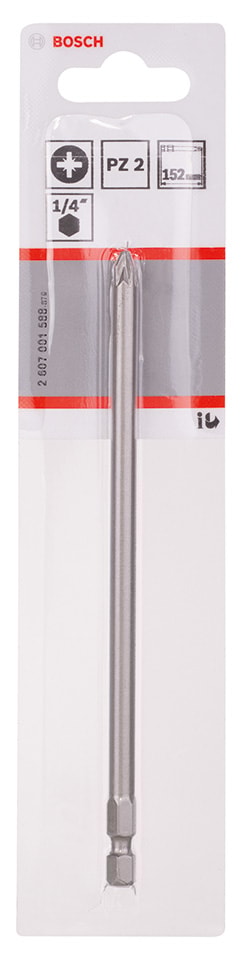 Skruvbit, extrahård PZ 2, 152 mm Utvändigt 1/4"-sexkantskaft ISO 1173 E6.3.