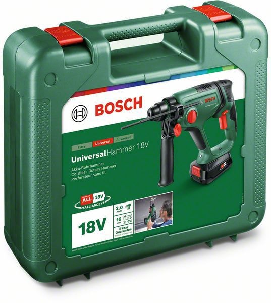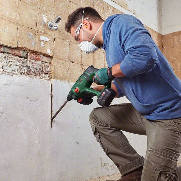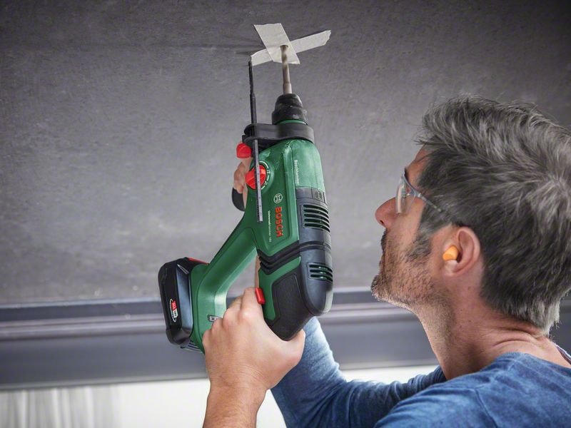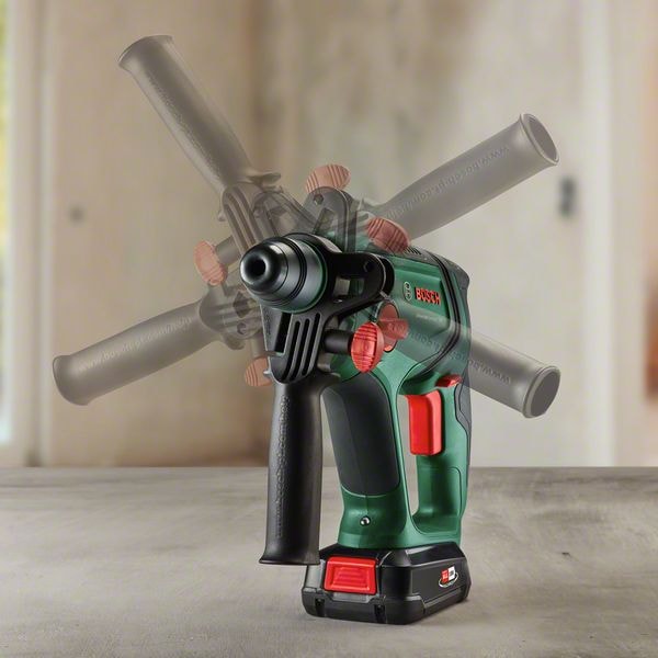 Detta sladdlösa kraftpaket gör det roligt att borra igen tack vare sin kombination av kraftfull slagmekanism, lätthet och flexibilitet. Den driver en 2,0 J pneumatisk hammarmekanism från Bosch som är perfekt för borrning av hål på upp till ∅ 16 mm i betong med en SDS plus-borrbit. Denna imponerande kraft klarar även kakel och kabelrännor. Gör-det-självare kommer att uppskatta den lätta, kompakta hammarstorleken som gör arbetet mindre uttröttande. Och med vibrations- och rotationskontroll skakar verktyget mindre och är mer stabilt.