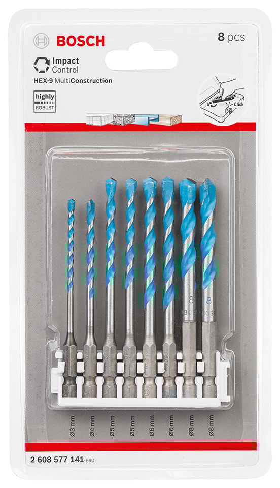 Borrset Multi Construction HEX-9 8 delar, 3mm, 4mm, 2x5mm, 2x6mm, 2x8mm.