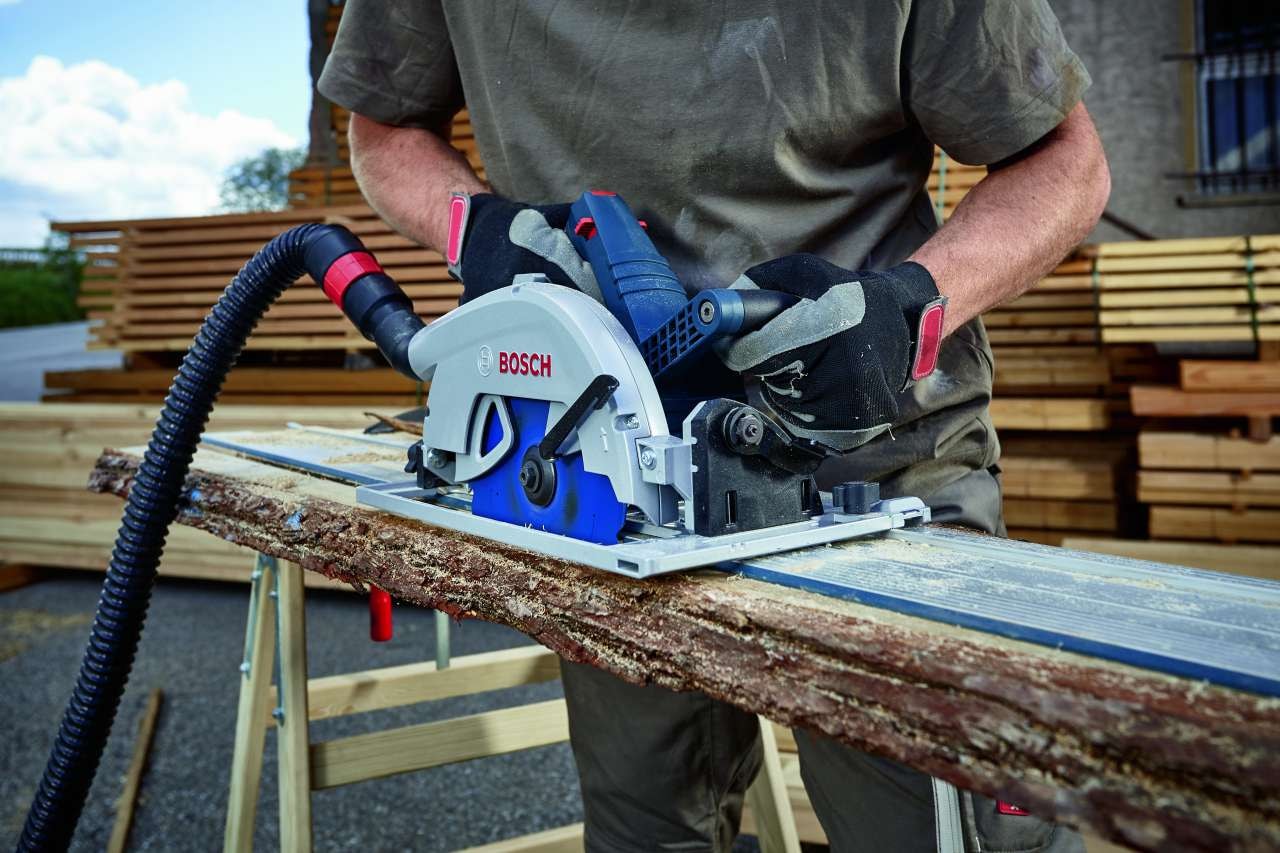 Det är perfekt för användning i trä och kompositmaterial med trä. Använd denna såg tillsammans med Bosch Click & Clean dammutsug, dammpåsar, anslutningsmodul GCY 42 och FSN styrskenor. Den är kompatibel med alla Bosch Professional 18 V-batterier och laddare (Professional 18V System). Maximal effekt uppnås med ProCORE18V = 8,0 Ah.