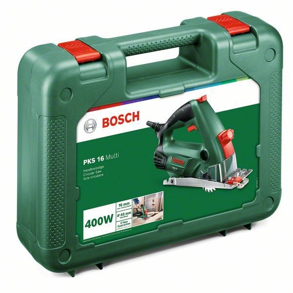 Den handhållna PKS 16 Multi levereras med tre sågblad för precisa sågningar i många olika material, som trä och träbaserade material (t.ex. laminat och parkett), plast, metall och kakel. Den har också en instickssågningsfunktion vilket ger ytterligare användningsområden. Dess lilla och kompakta ergonomiska design gör den enkel att manövrera för optimal kontroll och precision samtidigt som foten ger stabilitet vid sågning. Sågens spindellås gör det enkelt att byta sågblad.