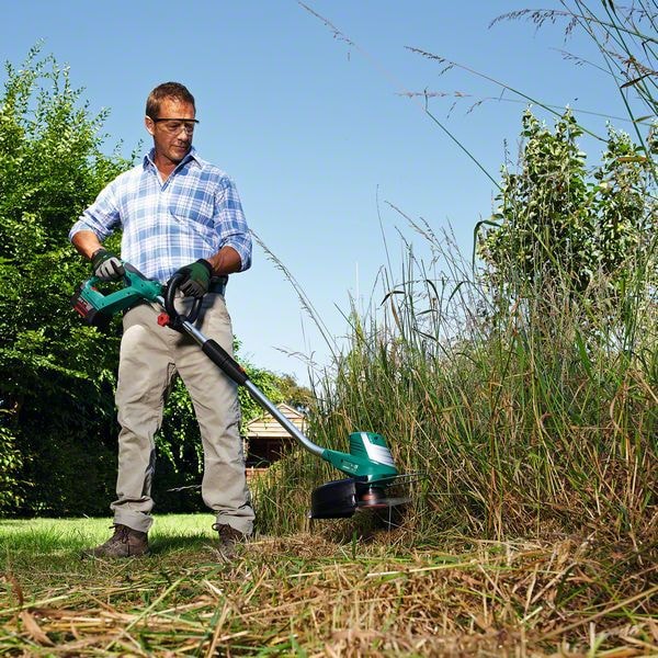 Ta kontroll över det vildvuxna och orörda med kraftfulla AdvancedGrassCut 36 sladdlös grästrimmer och upptäck utmärkt prestanda med smidig och enkel hantering. Upptäck effektiv klippning i hög kvalitet med trimmerns tvåtråds-klippsystem. Den halvautomatiska spolen säkerställer avbrottsfri trimning utan problem. Trimmerns huvud kan roteras med ett klick och gör trimning, kantklippning och avslut enkelt. Justera vinkeln för stödhandtaget för att nå svåråtkomliga, vildvuxna områden. Eliminera behovet av att slå dig fram och arbeta istället säkert runt plantor med hjälp av plantskyddet för precis och skonsam trimning. Verktyget ingår i systemet 36V POWER FOR ALL. Ett batteri kan användas i alla 36V POWER FOR ALL-verktyg.