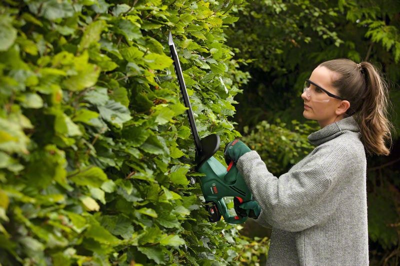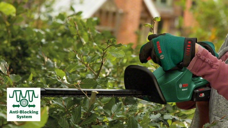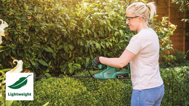 EasyHedgeCut 18-45 är perfekt för upprätthållning och trimning av små och mellanstora häckar. Den är med sina 2,3 kg mycket lätt och har en ergonomisk utformning för komfortabel hantering i olika arbetslägen, för minskad belastning på överkroppen vid arbeten under längre tid. 18V litiumjonbatteri ger optimal kraft i kombination med Bosch antinypsystem för lysande förhållande för rena, kraftfulla och kontinuerliga klipp utan frustrerande avbrott till följd av exempelvis nypning. Sladdlös mobilitet för rörelsefrihet i trädgården, utan begränsning eller risk att man klipper av strömsladdar. Verktyget ingår i POWER FOR ALL ALLIANCE. Ett batteri kan användas i en stor mängd verktyg från olika märken.