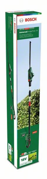 UniversalHedgePole 18 är perfekt för problemfri trimning av höga häckar. Det har en teleskopförlängning som kan justeras i höjdled och ett vinklingsbart huvud så att du enkelt når upp till 2,6 m utan att stå på stege. Boschs antinypsystem ger kraftfull klippning utan avbrott. Den är lätt (3,6 kg) och optimalt balanserad för komfortabel hantering. Ett kraftfullt 18V litiumjonbatteri ger upp till 2,5 timmars kontinuerlig arbetstid, utan risk att man klipper av strömsladden. Verktyget ingår i POWER FOR ALL ALLIANCE. Ett batteri kan användas i en stor mängd verktyg från olika märken.