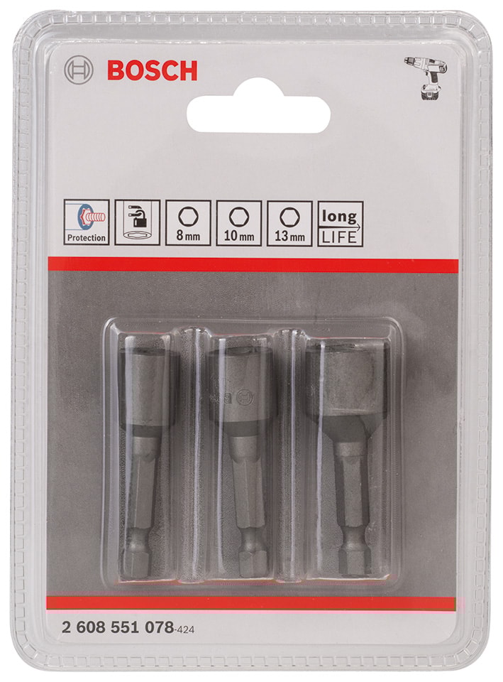 Avsedd för allmän skruvdragning med skruvdragare. Extra Hard mutteråtdragare är ett bra val för allmänt bruk. Alla uppgifter kan utföras tack vare borrets S2 Modified Steel och optimerad vämebehandling som leder till extra hård kvalitet och möjliggör lämplig funktion vid olika sorters uppgifter. En permanent magnet håller säkert fast skruvar och förhindrar att de glider. En permanent magnet håller säkert fast skruvar och förhindrar att de glider.