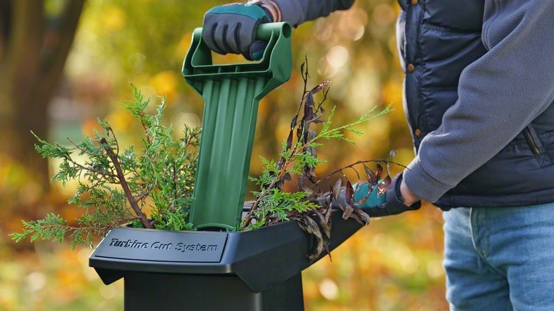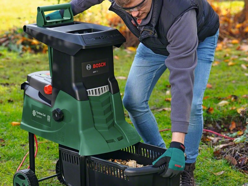 AXT 25 TC är den högpresterande, imponerande tysta kompostkvarnen för att förvandla trädgårdsavfall till näringsrikt kompostmaterial på nolltid. En kraftfull, borstlös 2 500 W induktionsmotor och unik Turbine Cut Technology i kombination för att klippa grenar med en tjocklek på upp till 45 mm, sega taggbuskar och trädgårdsavfall med mycket blad. Den automatiska snabbmatningstratten tar tag i grenarna och drar dem in i klippsystemet medan den praktiska påtryckaren styr mjukare material på ett säkert sätt, i synnerhet vid hantering av taggbuskar. Uppsamlingslådan är på hela 53 l, vilket innebär färre rundor till komposthögen. Det klippta avfallet tar upp mindre plats i soptunnan och är ett utmärkt kompostmaterial. För enkel och kompakt förvaring läggs tratten i uppsamlingsbehållaren så att kompostkvarnen endast blir 67 cm hög.