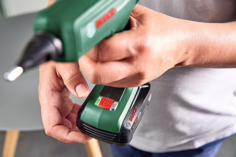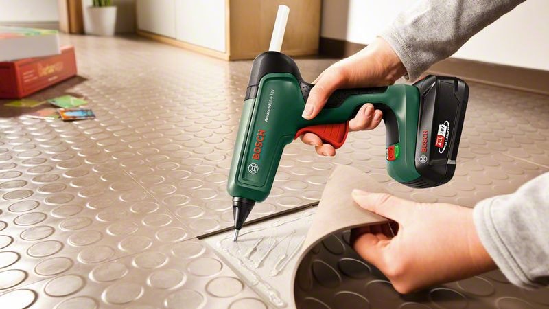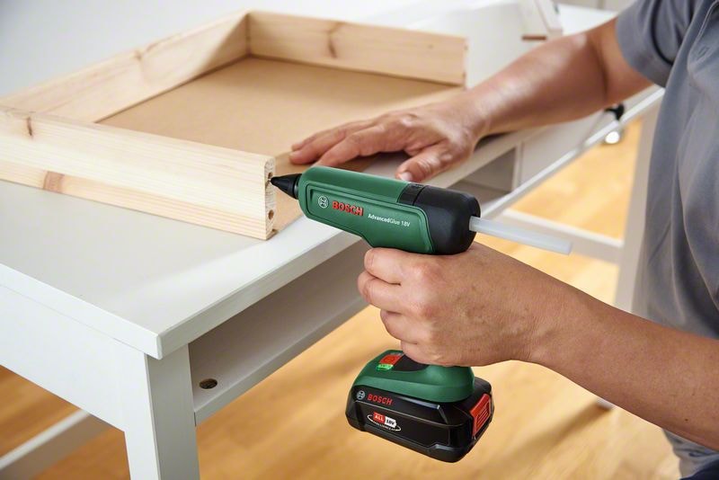 AdvancedGlue 18V är en kraftfull, sladdlös värmepistol som motsvarar effekten hos ett kabeldrivet verktyg och är kompatibel med Bosch 18V-batterisystem. På bara 90 sekunder är limpistolen uppvärmd och redo att användas. Den levererar optimal vidhäftning för perfekt sammanfogning liksom tillräckligt med korrigeringstid tack vare den konstanta höga temperaturen med teknik från Bosch. I dubbel temperatur-läge kan 200 °C ge maximal vidhäftning på gör-det-själv eller reparationer medan 130 °C är perfekt för värmekänsliga projekt. Detta smarta verktyg sparar energi också genom att stänga av sig själv vid inaktivitet.