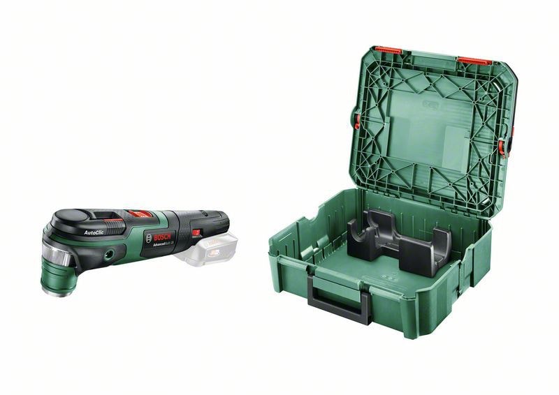 Detta mångsidiga, oscillerande 18 V flerfunktionsverktyg är det perfekta valet för en mängd olika gör-det-själv-projekt. En kraftfull motor och elektroniskt hastighetsförval gör att AdvancedMulti 18 kan uppnå hastigheter som matchas med behoven för varje jobb och material. För optimal synlighet ger ett 180° ljusband konstant belysning. Snabbt och enkelt, tillbehörsbyte på 3 sekunder, tack vare Bosch AutoClic. Ett stort utbud av Starlock-tillbehör, som är tillval, täcker en mängd behov. Kapa, såga, slipa, skrapa, skala och polera på trä, metall, plast, gipsskiva, puts och murbruk.