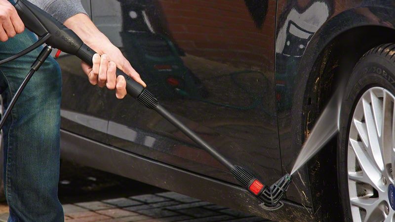 När det handlar om borttagning av smuts från avloppsgaller, hjulhus eller andra svåråtkomliga ställen är 90°-munstycket helt rätt. Det kan snabbt monteras på högtryckstvättens lans och riktar vattnet mot exempelvis trånga utrymmen eller höga höjder. Löv och smuts tas enkelt bort från jalusier, uterum och tak. 90°-munstycket levererar en hög nivå av arbetskomfort och är den perfekta hjälpen vid krävande uppgifter utomhus.