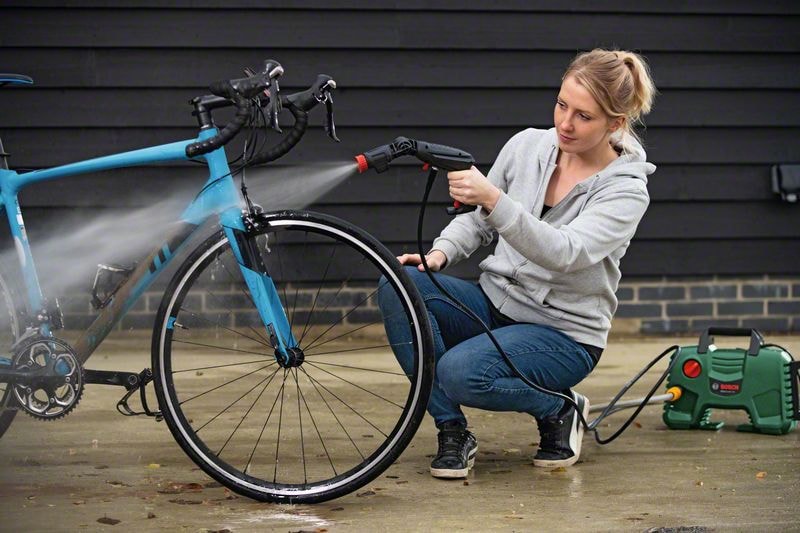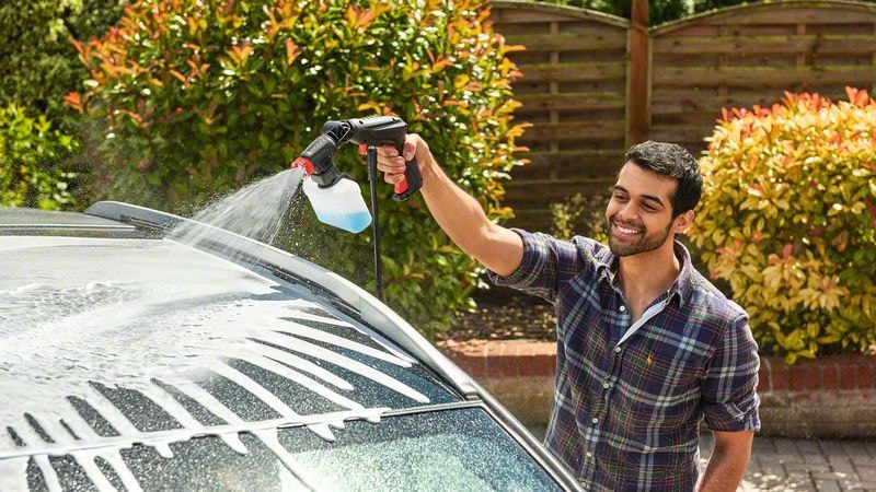 Tryck och klicka för att ansluta 360°-pistolen till högtryckstvätten för bekväm rengöring. Pistolen kräver endast en hand för användning vilket gör den perfekt för rengöring av lättare föremål, som leksaker. För svåråtkomliga utrymmen, som under fönsterbrädet, riktar det justerbara 360°-munstycket vattnet dit det ska. Det variabla munstycket med fjäderstråle levererar en kraftig vattenstråle med en smal inställning för borttagning av envis smuts, eller en bredare, mjukare stråle för skonsam borttagning från en mängd olika ytor.