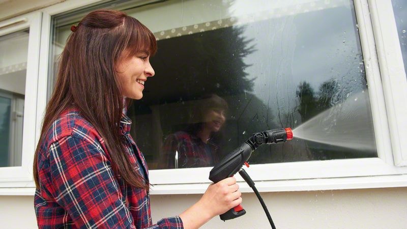 Med rengöringssatsen Bosch 360° är det enklare än någonsin att rengöra utomhus och få bort smuts på svåråtkomliga ställen. Denna tidsbesparande all-rounder levereras med en 360° spraypistol som, med enhandsanvändning och roterande munstycke, kan vinklas för problemfri rengöring av trädgårdsmöbler eller svåråtkomliga ställen som höga fönster eller undersidan av bilar, med stråle eller skonsam rengöring. Anslut en förlängningsslang på 6 meter för längre avstånd, samtidigt som du fortfarande är ansluten till ström och vatten. Denna dynamiska rengöringssats kompletteras av en kraftigt absorberande mikrofiberduk som kan användas för att polera ränder och få bilar och cyklar att skina.