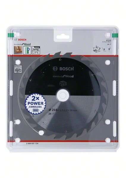 Standard for Wood cirkelsågklinga maximerar batteritiden för sladdlösa sågar. Den extra tunna skränkningen minskar friktionen och materialavverkningen med lägre energiförbrukning och mindre ansträngning. Hårdmetalltänder av hög kvalitet ger tillförlitliga resultat. Aggressiva tandvinklar ger jämn sågningsprestanda. Lämplig för sågning i alla sorters trä och trämaterial. Standard for Wood cirkelsågklinga ger tillförlitliga sågresultat tack vare dess hårdmetalltänder av hög kvalitet. Expansionsslitsar minskar buller och värme markant under arbetet. Klingan passar alla vanliga sladdlösa bordsågar