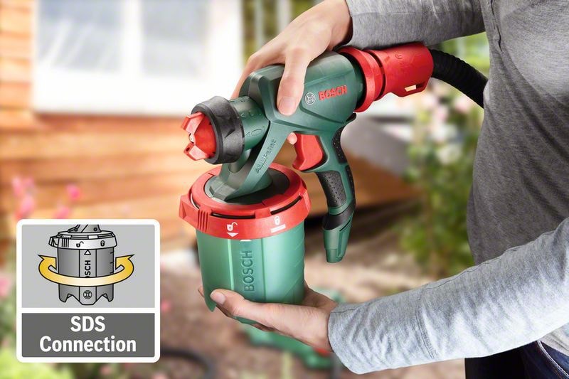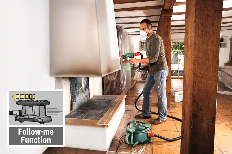 Måla med passion och perfektion – inget projekt är för stort för PFS 5000 E vid målning eller ommålning av hus, på insidan och utsidan. Hejdå roller och pensel – denna maskin sprayar finfördelad färg i jämna skikt på alla strukturer med 1200 W effekt. Svåra ytor och arbete över huvudhöjd eller nära golvet är inga problem, och du får vackert resultat vid en otrolig hastighet på 3 m²/min. Två färgbehållare på 1000 ml kan användas efter varandra för hålla under hela projektet. Rör dig fritt tack vare hjul som ger enkel transport och utmärkt manövrerbarhet under användning.