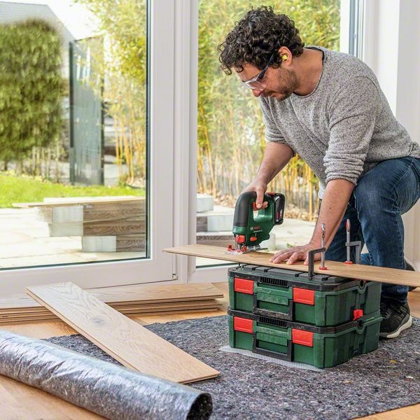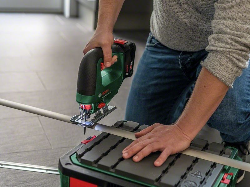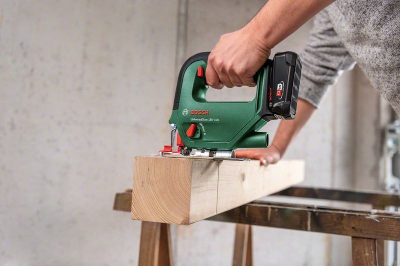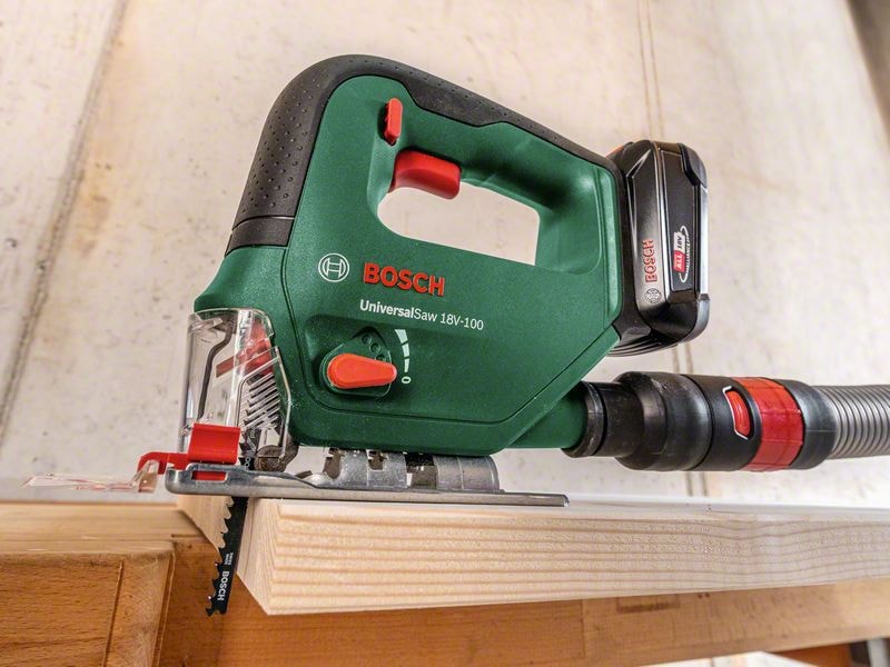 För en rad olika såguppgifter i hemmet, oavsett om det gäller parkett eller hyllor – den sladdlösa UniversalSaw 18V-100 fixar allt. Den har ett sågdjup på 100 mm i trä och upp till 8 mm i stål och levereras med utvalda praktiska tillbehör. Denna sticksåg gör ett toppenjobb på kort tid tack vare pendelfunktion i fyra steg, vilket trycker bladet genom de hårdaste material. Både erfarna gör-det-självare och nybörjare kommer att uppskatta det praktiska hastighetsreglaget med mjukstart och effektjustering, liksom SDS-systemet som innebär enkla och bekväma bladbyten. Verktyget ingår i POWER FOR ALL ALLIANCE. Ett batteri kan användas i en stor mängd verktyg från olika märken.
