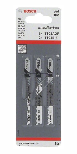 De kan användas med sticksågar med enkelhylsor. 3-delssatser med Laminate sticksågblad passar för laminatarbeten. Den innehåller blad för raka och böjda snitt med exakta och rena resultat i hårda träslag och ej nötande trämaterial.