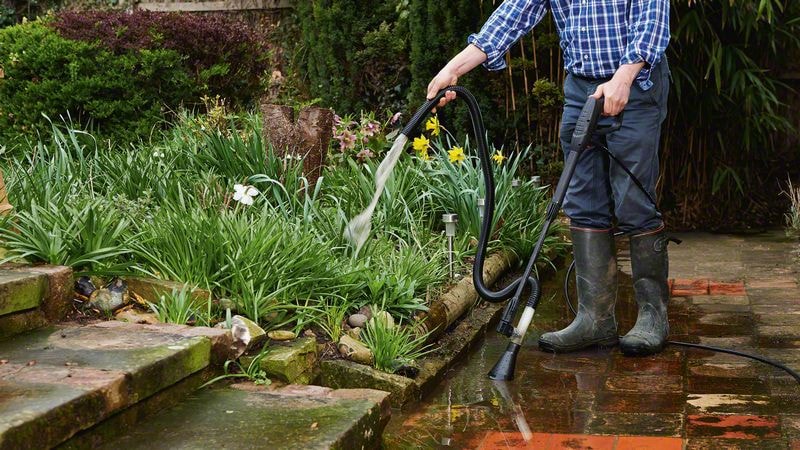 För borttagning av stora vattenansamlingar är sugmunstycket det perfekta tillbehöret i kombination med Aquatak högtryckstvätt. Kan enkelt anslutas till änden av tvättlansen och förvandlar högtryckstvätten till en pump. Högtryckstvätten uppnår ett sugflöde på mer än 50 liter vatten per minut vilket gör den till den perfekta lösningen för tömning av dammar eller vattenpölar från altanen.
