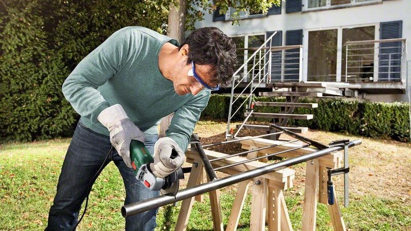 Vinkelslipen ger hanterbarhet för snabbt arbete på gör-det-självjobb. Motorn på 750 W ger kraft nog att hantera mellanstora arbetsuppgifter. En ergonomisk utformning, låg vikt och kompakt storlek med ett slimmat hölje och låg vibration gör att du kan arbeta bekvämt, även under längre tid. Verktyget är utformat för slipning, kapning och borstning på metall, sten, betongblock och kakel. Den har dessutom ett skydd med snabbjustering, vilket skyddar mot gnistor under drift.