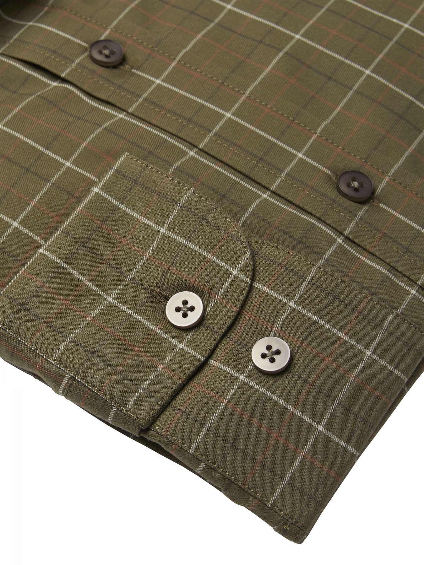 Belmont Regular Fit Shirt är en skjorta med en klassisk flerfärgad ruta i ett tvilltyg i stor andel ekologisk bomull. Tyget är merceriserat vilket ger färgerna ett bättre djup och tyget en extra lyster och mjukhet. Passformen är rak och något vidare med veck som ger extra volym över ryggen, skjortan lämpar sig såväl i vardagen som till rörliga aktiviteter. Belmont har dolda knappar under kragen vilket håller den på plats även när den är uppknäppt. Modellen är välskräddad och har utanpåliggande knappslå med knappar i pärlemorimitation.