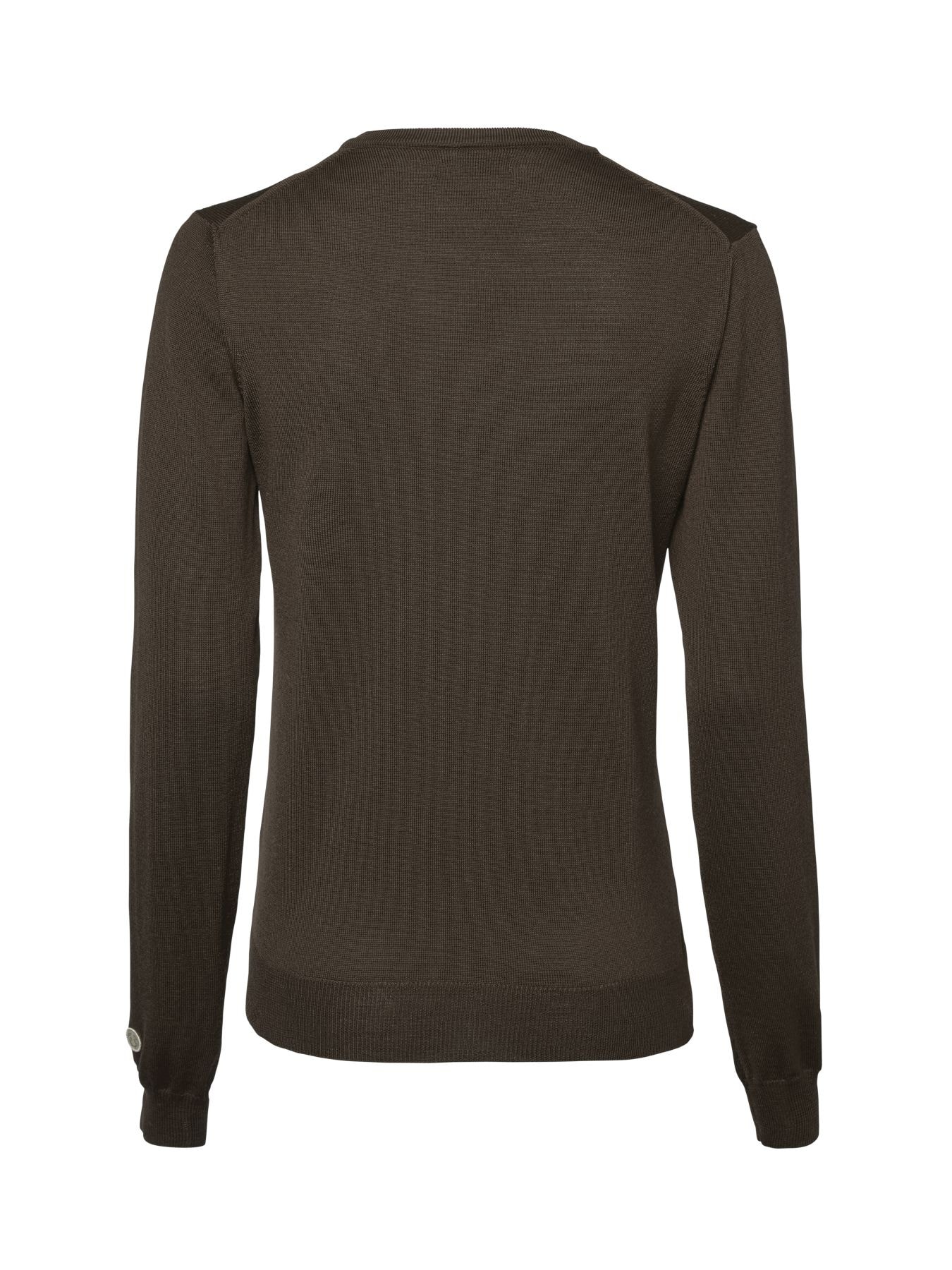 Chevaliers damtröja är stickad i ett högkvalitativt, tvåtrådigt merinogarn som kommer från italienska producenten Tollegno. Garnet har extra långa ullfiber vilket ger denna pullover en vacker lyster. Det här är ett mycket användbart plagg. Du kan bära den som den är, under västen eller som ett värmande mellanlager under en kavaj. Ull är naturens egen high-techfiber och har både en värmande och en svalkande funktion. Självklart är ullen framställd utan mulesing.