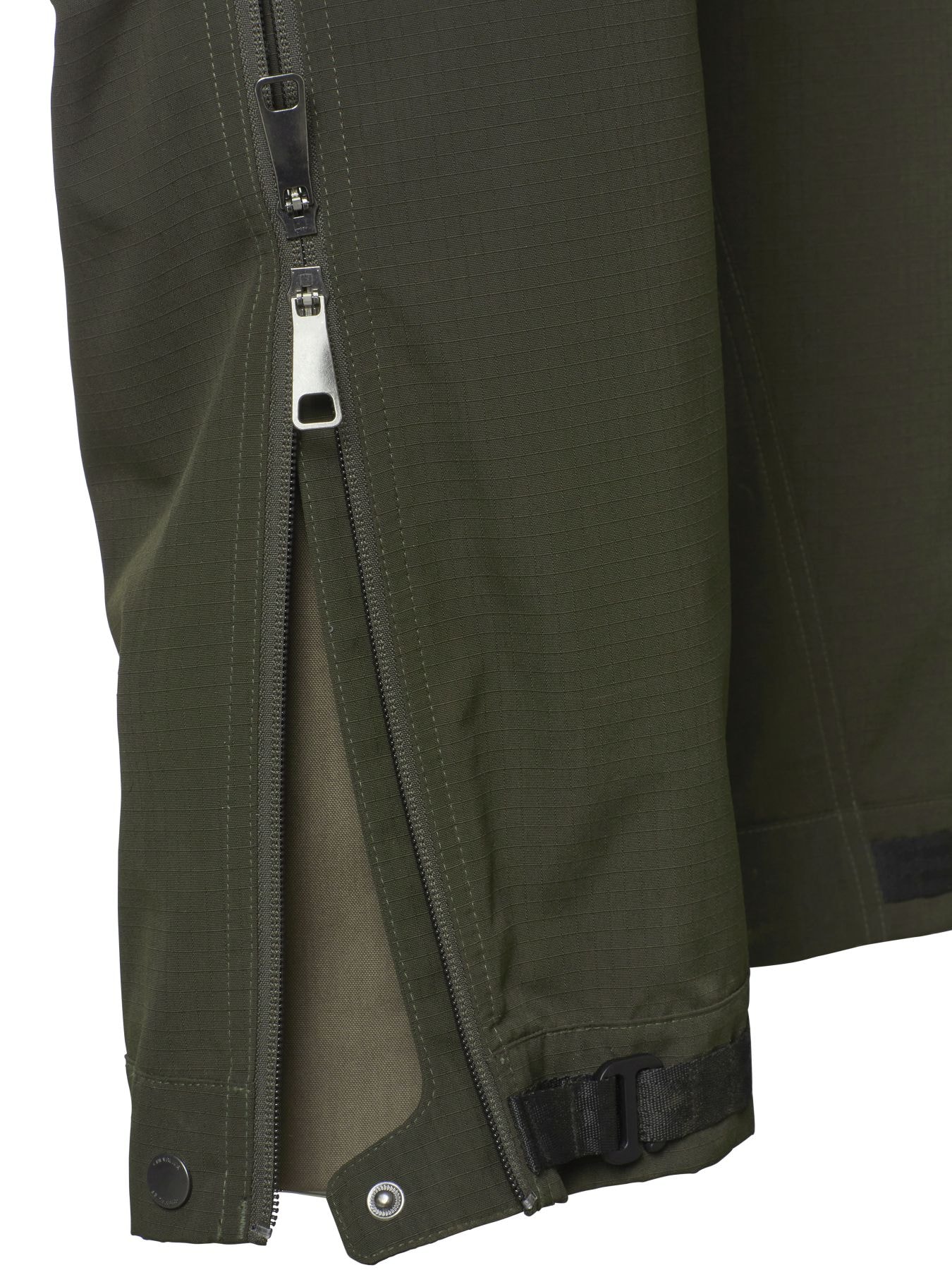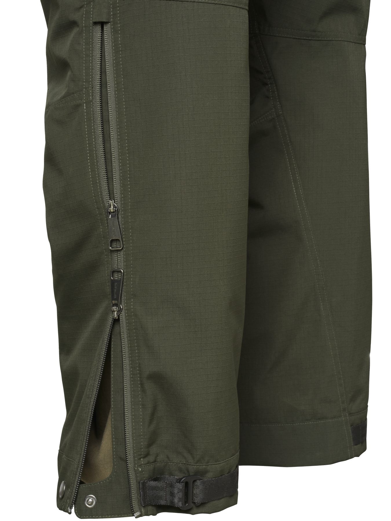 Chevalier Reinforcement Chaps är gjorda i ett Ripstop Cordura® material vilket gör dem slitstarka och skyddande. Det här är chaps som är vindtäta, slitstarka och vattenavvisande och som är användbara i snårig eller fuktig terräng. För högre rörlighet och komfort är chapsen konstruerade med förböjda knän. Du fäster chapsen enkelt runt ett bälte i midjan eller i hällorna på byxorna. Bensluten är justerbara med hjälp av en hake. För att hålla chapsen på plats och undvika att de glider upp så är de även utrustade med en hake i fållen nedtill som går att fästa i kängorna. Från knäet till fållen finns en dragkedja i sidsömmen som både gör dem lättare att ta av och på samt fungerar som ventilation.