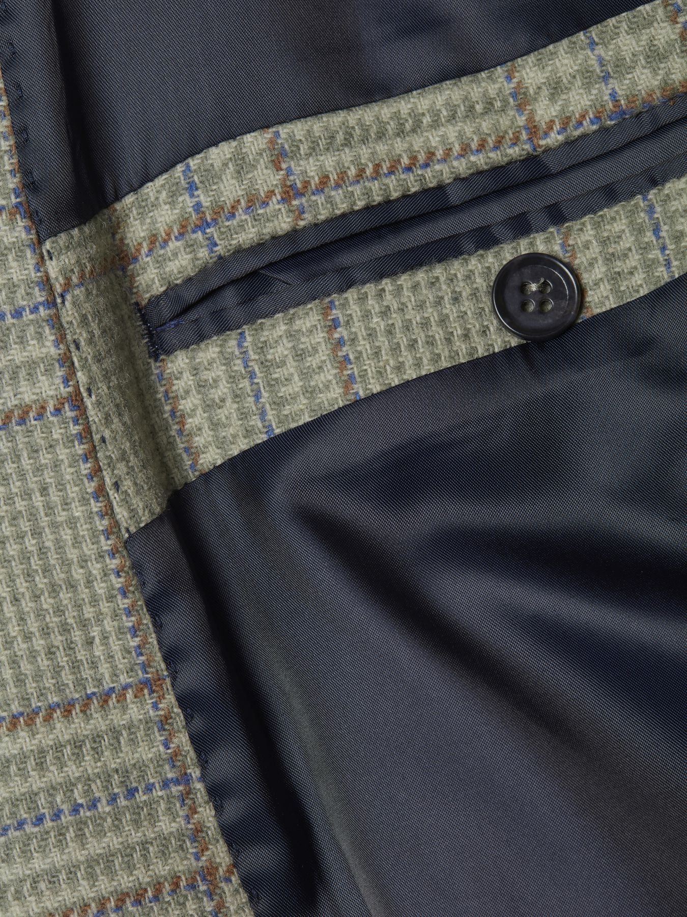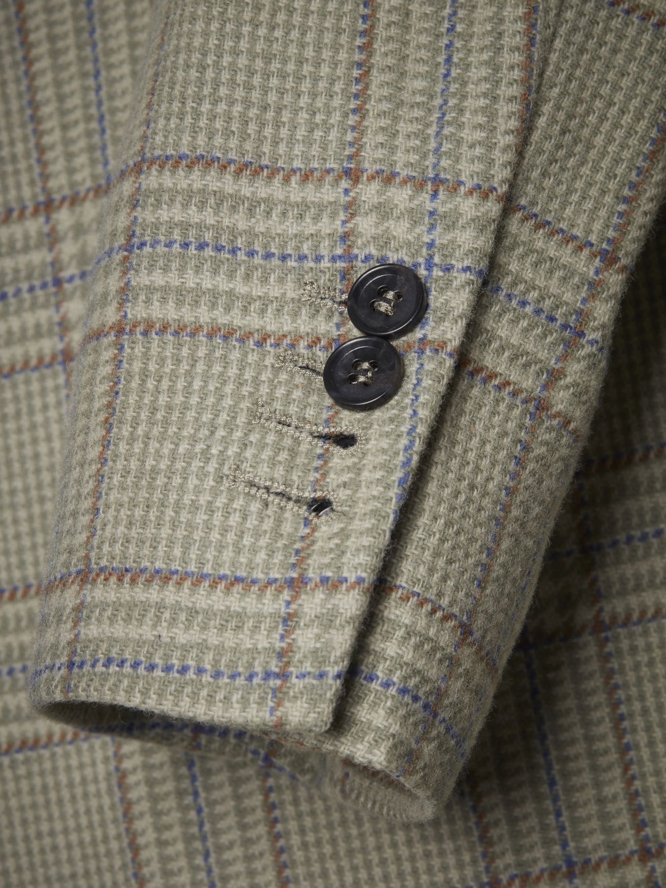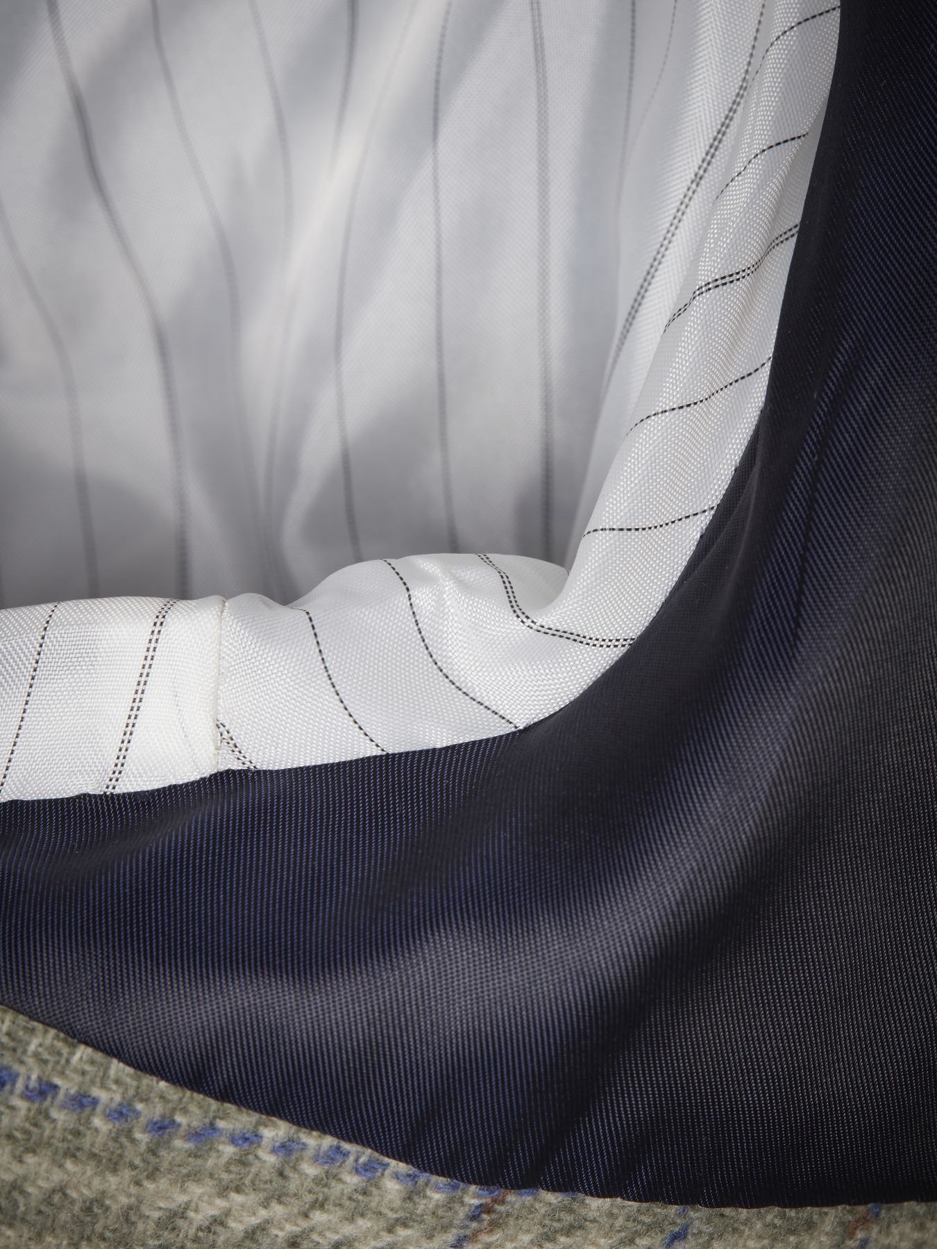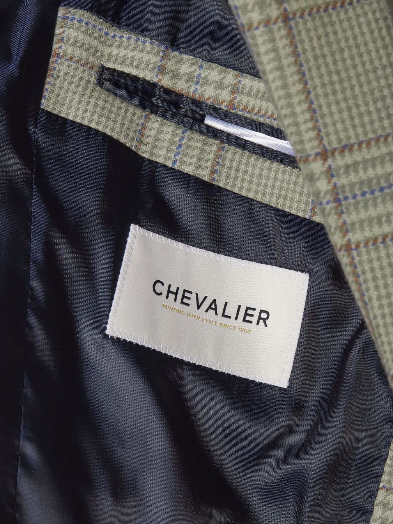 En traditionell tweedkavaj har många fickor. På framsidan finns två fickor försedda med ficklock samt bröstficka. Vår tweedkavaj Wiston har dessutom två innerfickor där du kan stoppa din plånbok, mobil och nycklar och en klassisk cigarettficka. Tweedtyg i äldre tiders jaktkläder var jägarens första kamouflage och vårt tyg påminner om påminner om daggtunga mornar eller härligt frostiga höstdagar. Snygga detaljer är de klassiska armbågslapparna som ger ett rustikt intryck och de mörkbruna knapparna med Chevalierlogga. Kavajen har dubbla sprund baktill och djupblått foder.