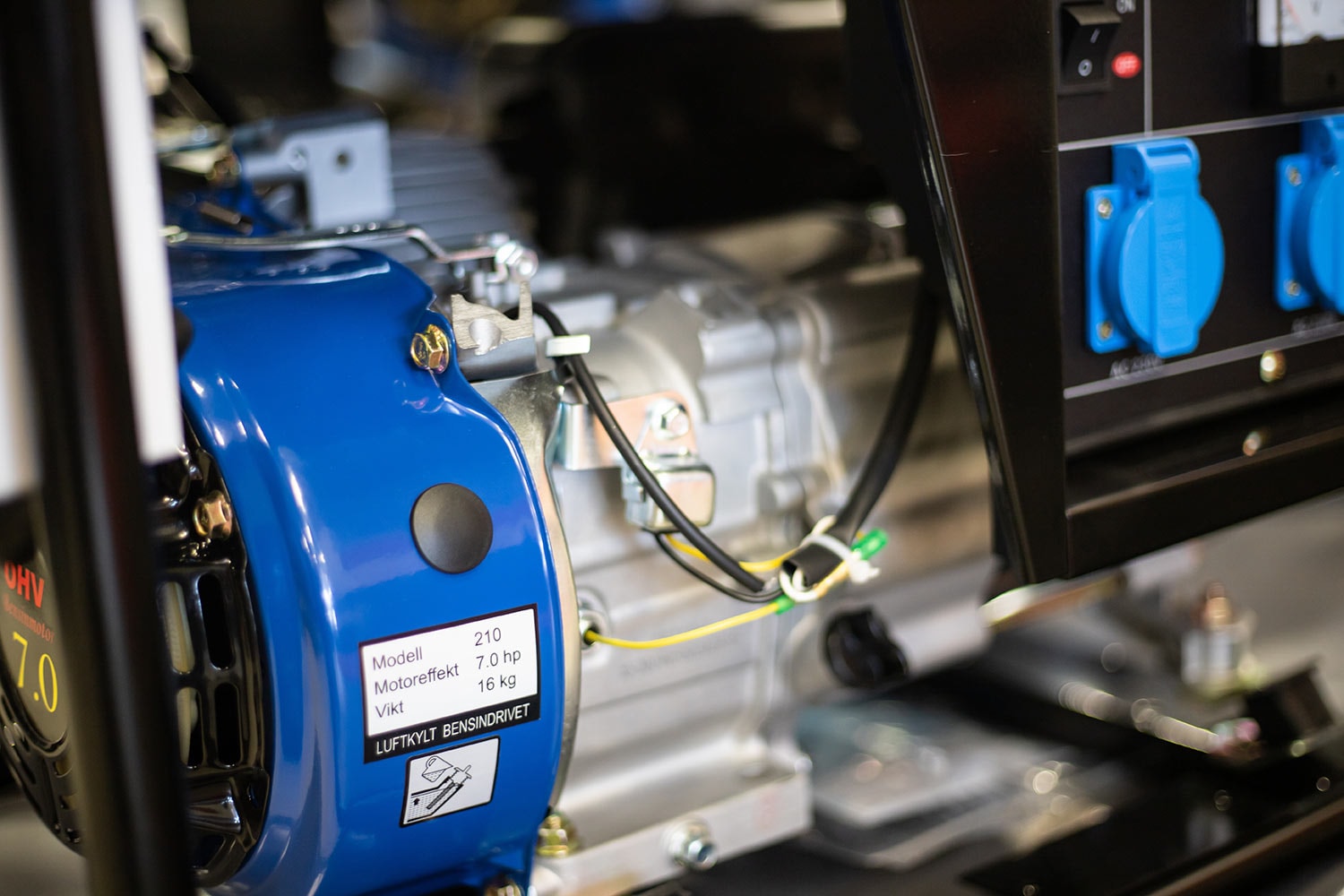 Passar för drift av mindre elverktyg, belysning m.m. Generatorn är även försedd med 12-volts batteriladdningsuttag.