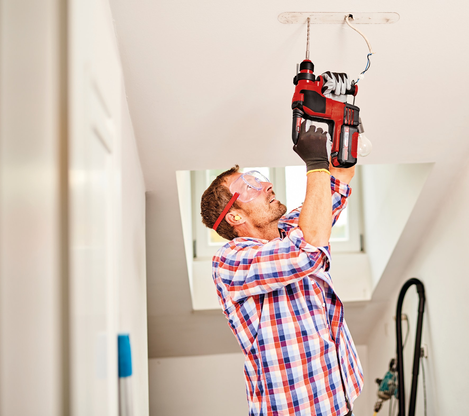 Den sladdlösa roterande borrhammaren Herocco från Einhell är en tillförlitlig maskin: för borrning, slagborrning eller mejsling, med eller utan låsning är den sladdlösa roterande borrhammaren en omtyckt allroundmaskin.