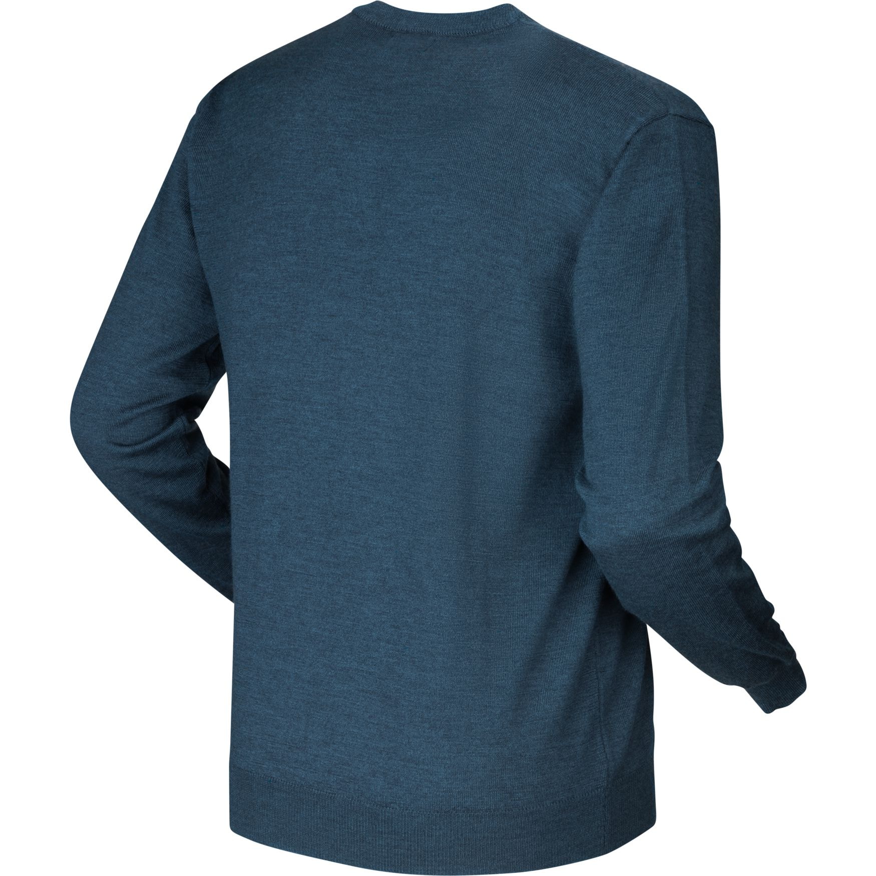 Glenmore-tröjan är tillverkad i mjuk, ren merinoull. Fåren som ullen kommer från har inte utsatts för så kallad mulesing, och tröjan har ribbstickning längs halsringningen, i ärmsluten och nedtill.