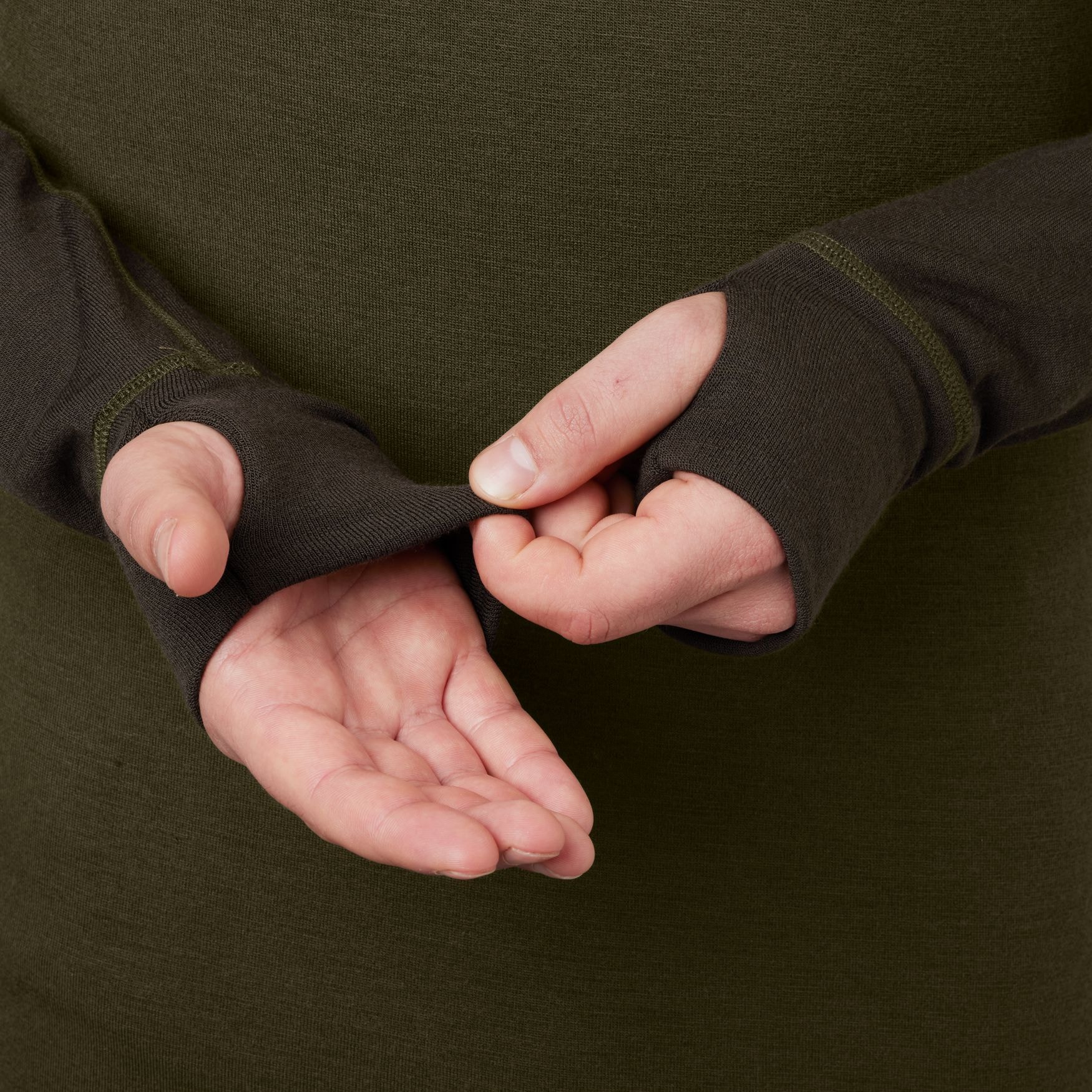 Den långärmade Härkila Base Warm-undertröjan är den varmaste undertröjan i vår kollektion. Den är tillverkad i en mycket mjuk, varm och naturligt temperaturreglerande ullblandning som andas, vilket gör den till det perfekta mellanlagret på dina jakter i kallt väder. Undertröjan har ståkrage så att du kan knäppa den ordentligt runt halsen, men samtidigt en dragkedja ner till mitten av bröstet, så att du verkligen kan svalka dig om du blir för varm.