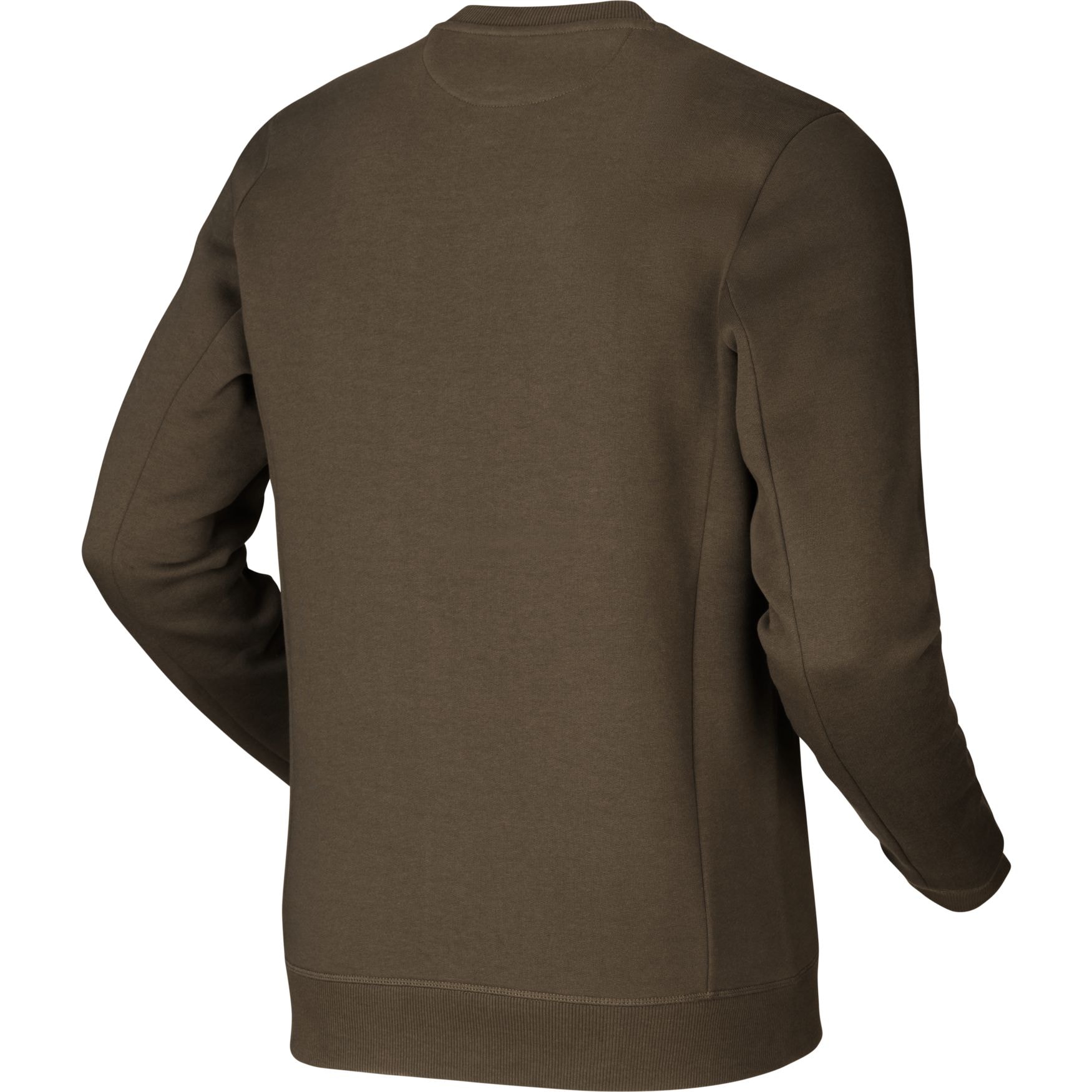 Härkila-sweatshirten är tillverkad i 80 % bomull och 20 % polyester. Tröjan har ett stort tryck på bröstet samt ribbstickad kant längs halsringningen, nedtill och vid ärmhålen.