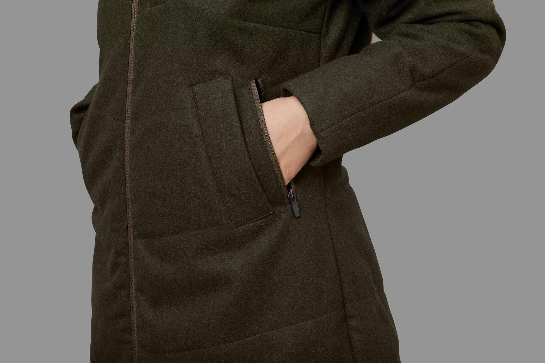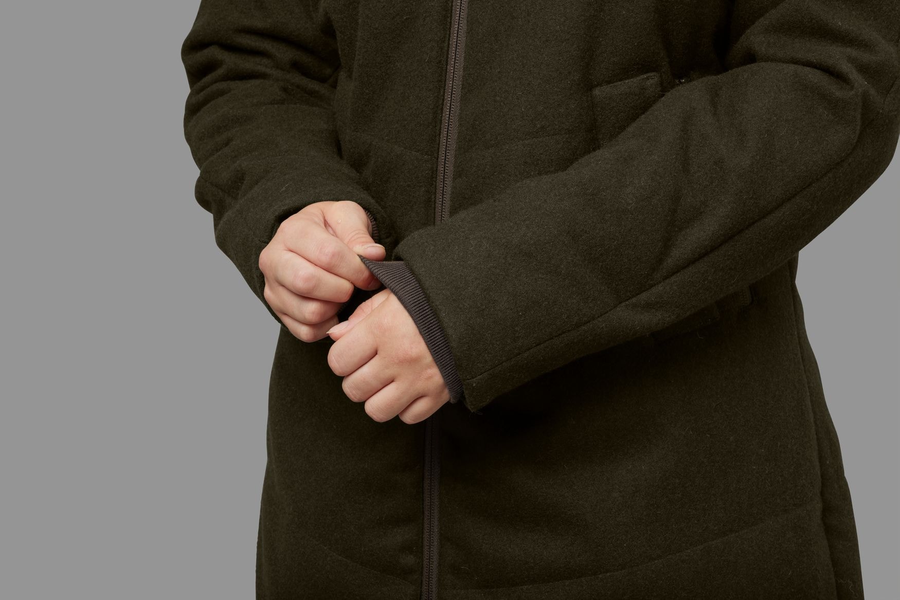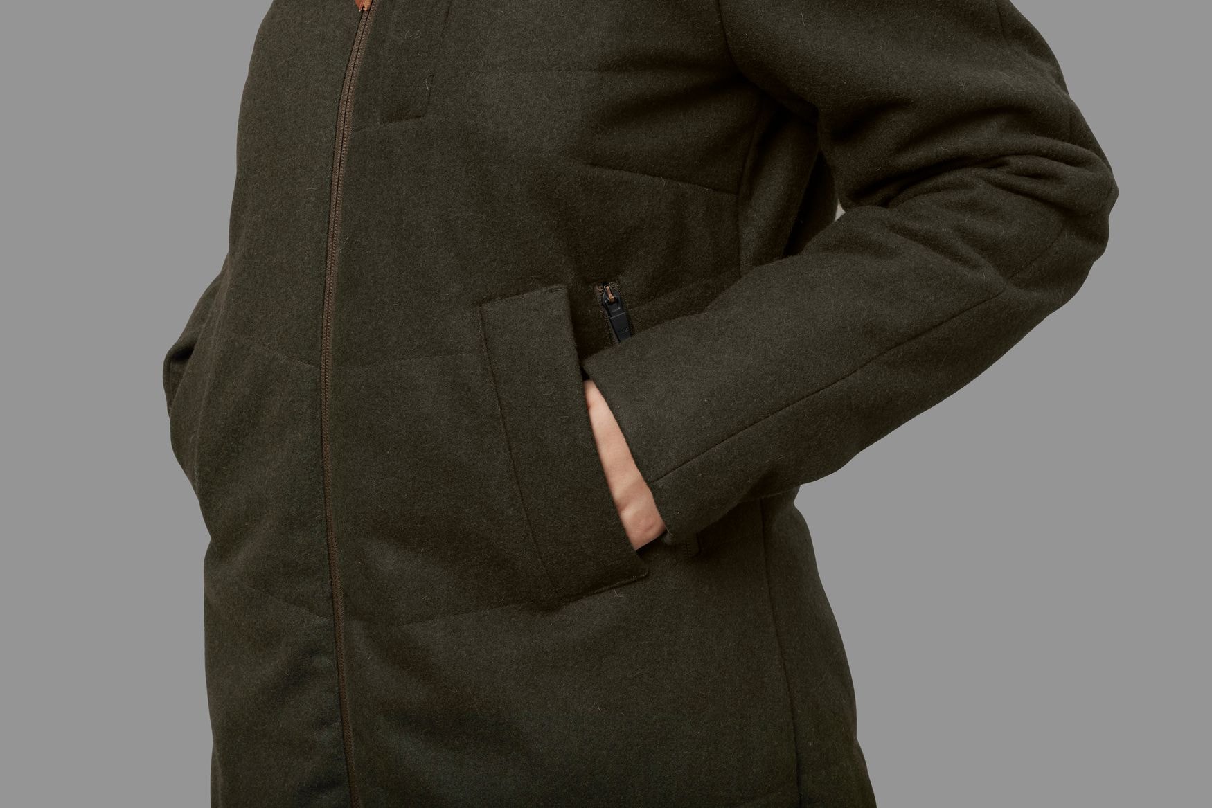 Metso Winter-jackan för damer är en av de varmaste och absolut tystaste jackorna i hela vårt sortiment. Den är figursydd med väl tilltagen längd så att den slutar en bit ner på låren, och den är tillverkad i en vatten- och smutsavvisande ullblandning som andas. Dessutom är den fodrad med ett tjockt och varmt lager ren ull. Det ger mycket bra komfort, även i mycket stark kyla, och gör jackan till det givna valet vid stillasittande och aktiv jakt under årets kallaste månader.