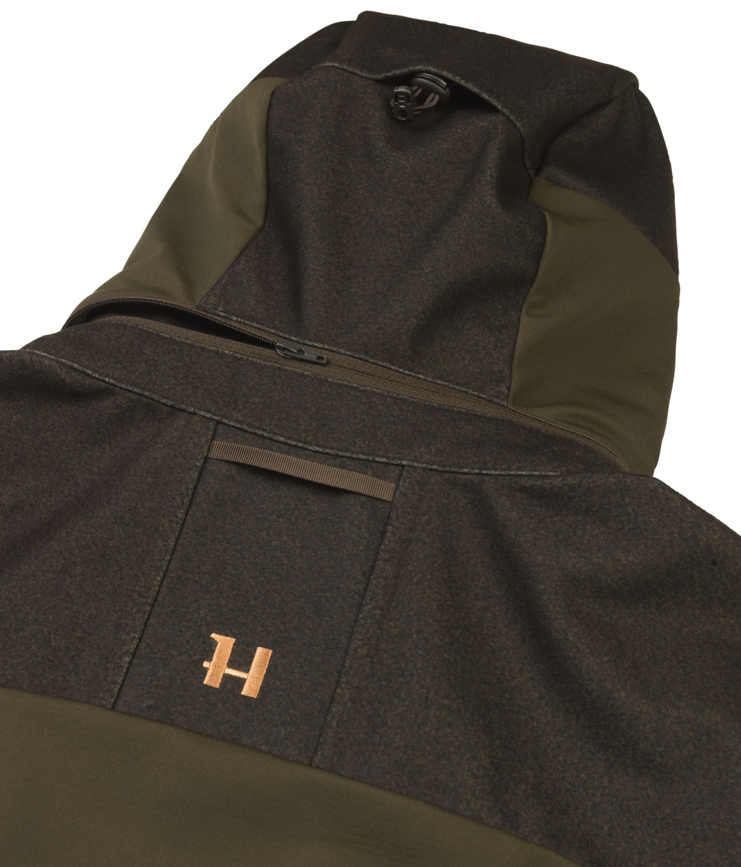 Mountain Hunter Hybrid-jackan har ett aktivt snitt och är tillverkad i ett både ventilerande och töjbart ArcStretch®-material. På axlarna och överarmarna är jackan vindtät, och den har ett integrerat HSP® Härkila Storm Pro-membran som gör jackan ventilerande och vindtät.