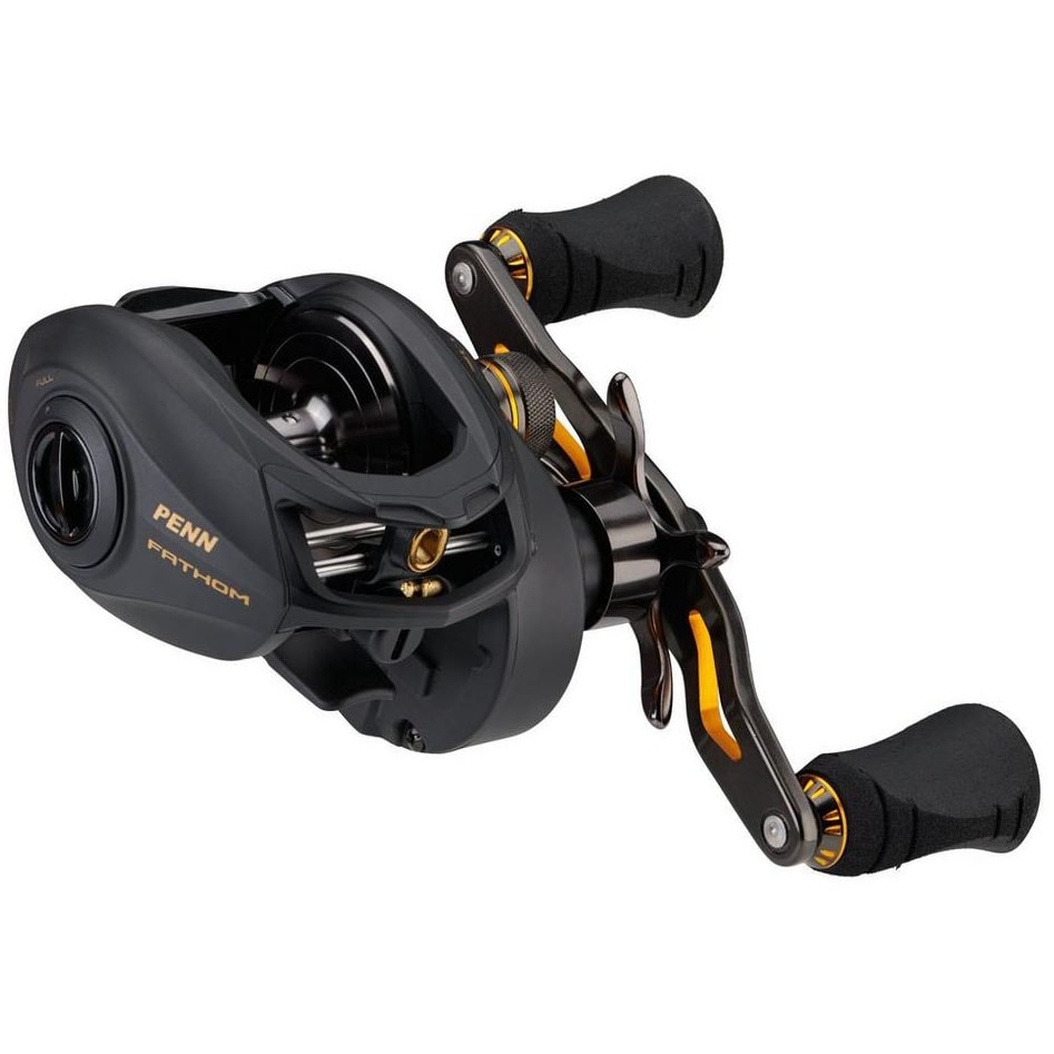 PENN® Fathom lågprofilrullar har alla funktioner du behöver för att ta itu med den tuffaste fisken i havet. Kropp och höger sidogavel är helt i metall, detta matchat med huvuddrev och växel i mässing ger en drivning med oöverträffad kraft. Finns i storlekarna 200, 300 och 400 för att passa just ditt predatorfiske.