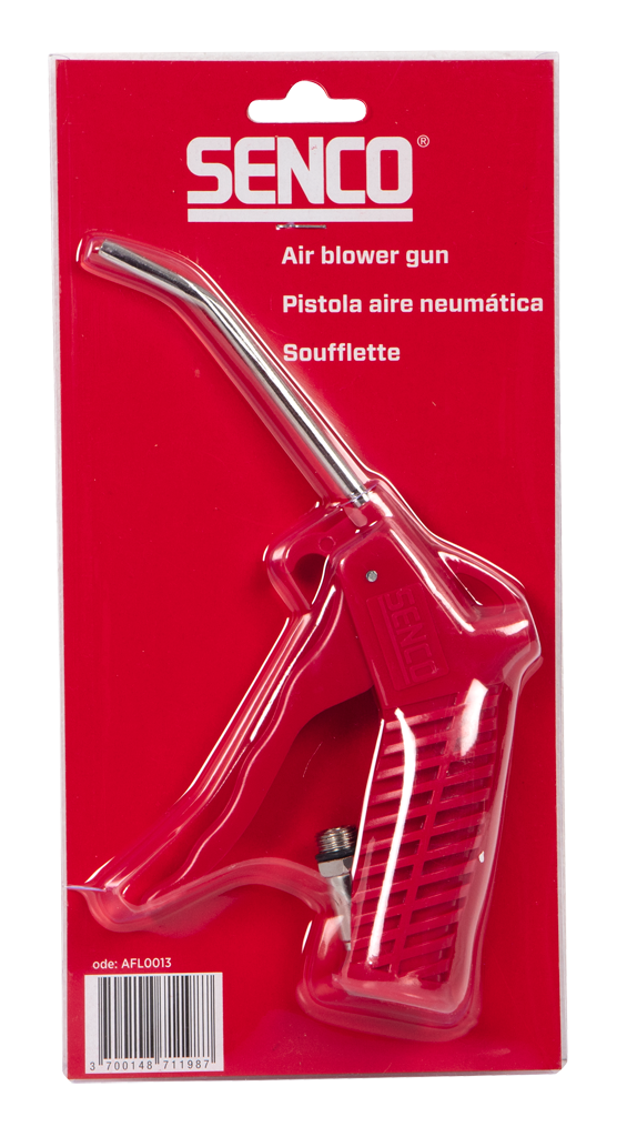 Blåspistol i aluminium som är lätt att koppla på tryckluftsslangen till kompressorn.
