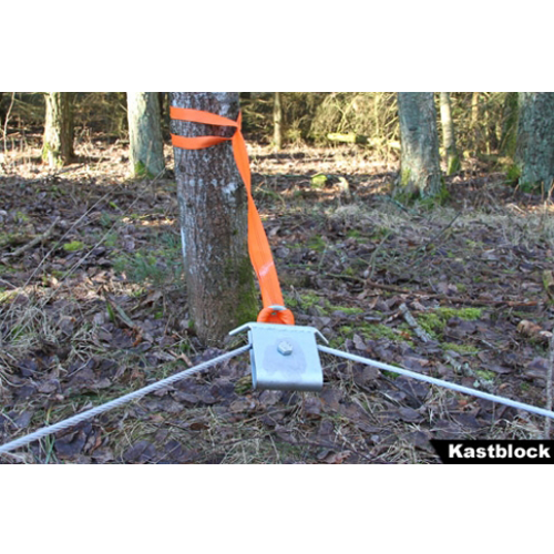 Med detta galvade kastblock kan man få vajern att ändra riktning så att man kan vinscha runt stubbar, träd, stenar och annat. Kastblocket fästs i ett lämpligt träd med tillhörande band som läggs som en snara runt trädet. Vajern läggs i kastblockets hjul utan att man behöver dela eller demontera något. Vajern hålls på plats i kastblocket med två stycken rundjärnstappar, så att den inte ofrivilligt hoppar ur sitt läge.