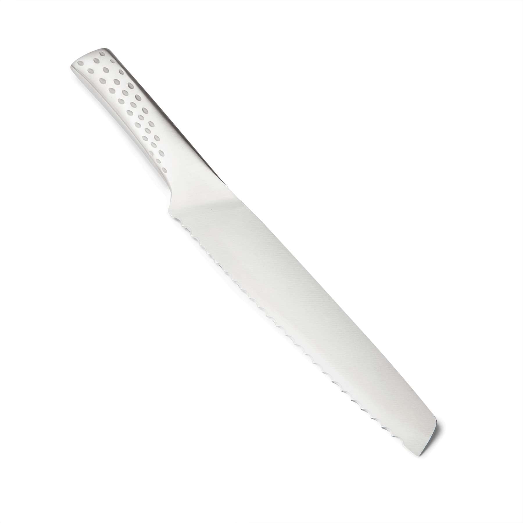 Servera nygräddade frukostfrallor direkt från grillen eller fullborda middagsmenyn med ett fat kryddsmör och grillade brödskivor. Deluxe-brödkniven är tillverkad i rostfritt stål och utformad för att ge dig bästa möjliga grepp – det perfekta verktyget för att skära alla sorters bröd i vackra skivor.
