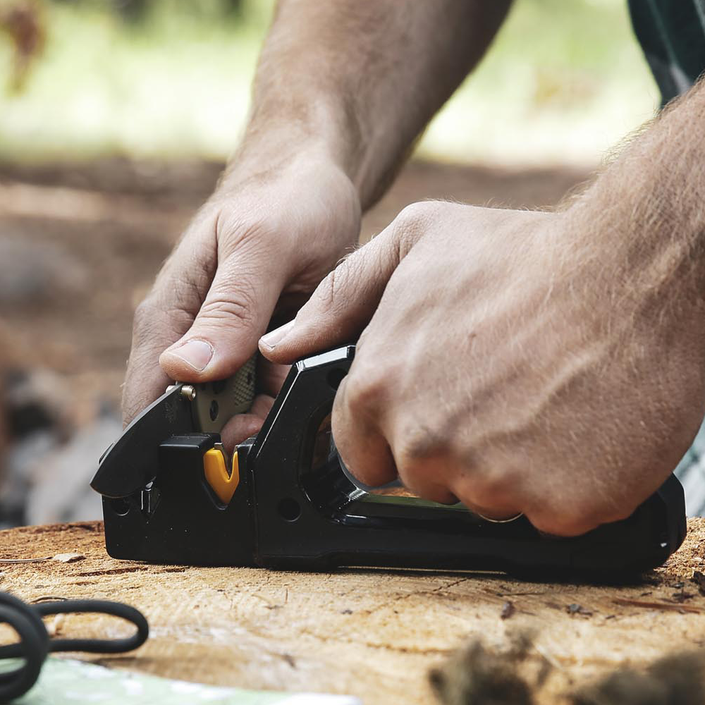 Handhållen kniv-och verktygsslip från Work Sharp. Perfekt för att slipa knivar, saxar, yxor och trädgårdsverktyg.